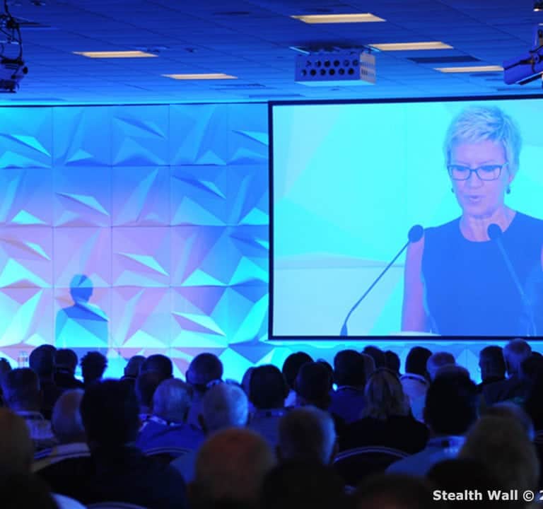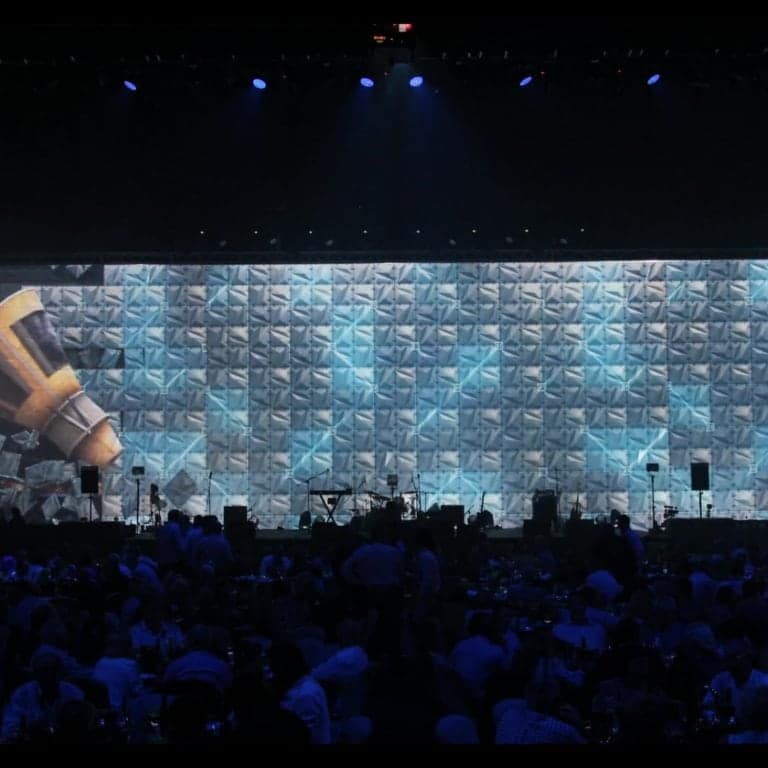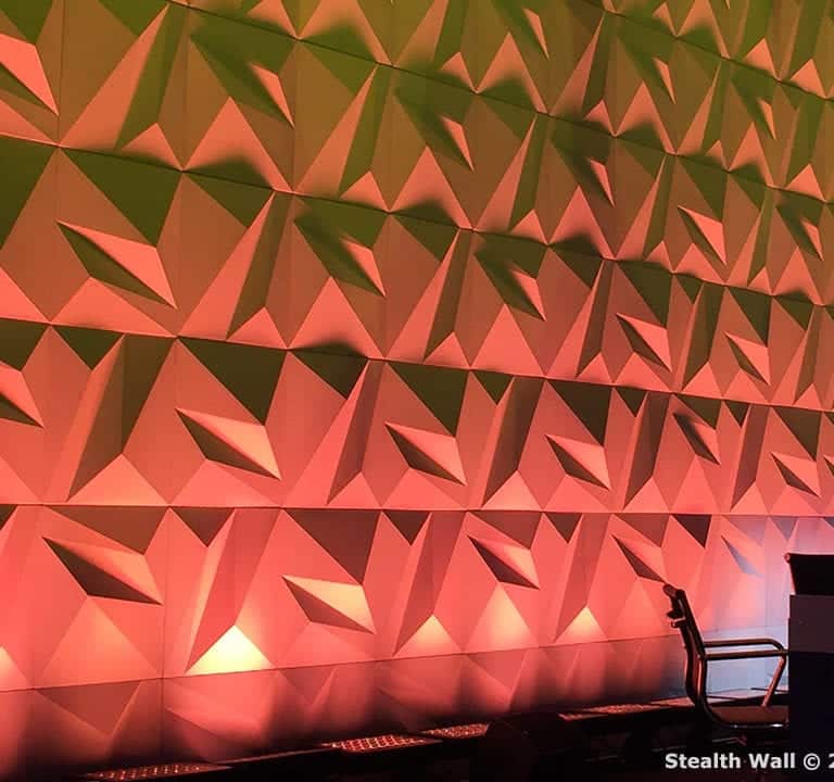 The Stealth Wall is one of Modular Backdrop’s versatile modular sets. The interlocking 3D scenic panels allow the wall to be adapted to any venue with our easy to operate QR (Quick Release) Levers. The matte white finish of each panel is perfect to reflect and absorb lighting and becomes a perfect canvas for the trending technologies of 3D Projection Mapping and Blending. Each panel measures 24 inches x 24 inches and weigh’s less than 2 pounds each. Available across the US as a cost effective solution for any event. Click here for more information about 3D Augmented Projection mapping on our Stealth Wall?